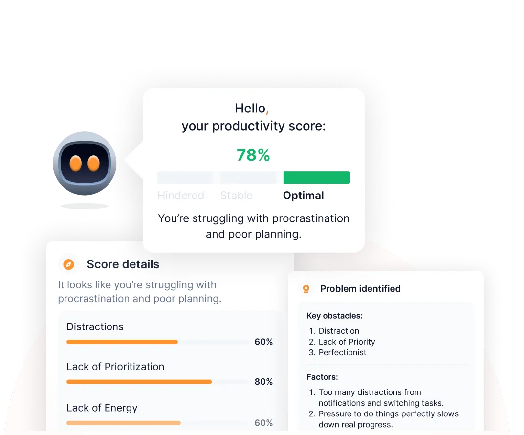 Stay focused, fix what’s holding you back, and stay motivated with smart support from Qubio AI.